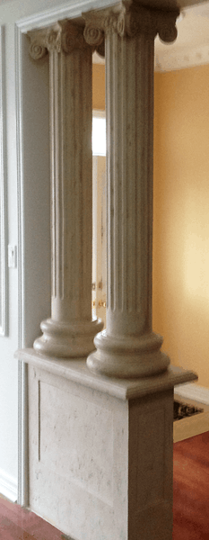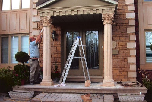 Our cast stone columns are manufactured, splits into two halves and are designed to wrap around an existing structural support post. Half or full columns are available for decorations as well. Standard, custom size columns are priced up on request. These unique columns are custom to fit anyone's project.